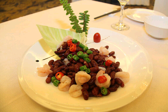 热菜:粗粮炒虾球、银杏粉丝鳝、清炒时蔬、老火靓汤(位)