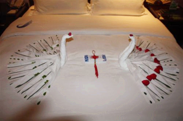 节日当天入住客房行政楼层的宾客,酒店将赠送中国最古老的爱情信物——同心结,并对行政套房做七夕主题布置,同时赠送精美丝绸工艺伞一把。