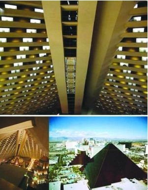 位于“赌城”拉斯维加斯的酒店总是能让我们大开眼界。卢克索赌场酒店的外观设计以埃及风格为主题,主楼是金字塔型。因此酒店内的电梯使用的是斜道式升降机——它沿着酒店金字塔内壁以39度的倾斜角上升,这可以让游客以一种奇特的角度俯瞰整个酒店。