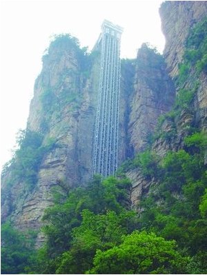 在中国张家界悬崖一侧,高326米的百龙升降机格外引人注目。之前有报道称,位于世界自然遗产张家界武陵源风景区的百龙升降机刷新了3项《吉尼斯世界纪录》:世界最高的全暴露户外电梯、世界最高的双层观光电梯,以及世界上客运量最大最快的电梯。