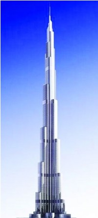 哈利法塔高度为828米,据称内有57部电梯,它们的速度最高可达每秒17.4米,上升到楼顶,只需要短短的35秒。另外大楼还提供双层观光升降机,每次最多可载42人。