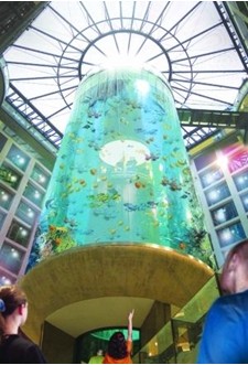 作为世界上最大的圆柱形鱼缸,它建于2003年,游客得以近距离一睹这个25米高的鱼缸全貌,诀窍就是乘坐内部电梯——在内径9米的鱼缸内部,有一部自动电梯可以让游客全景式地观看这个巨大的“水族箱”,有时,还有潜水员在鱼缸里和游客打招呼。